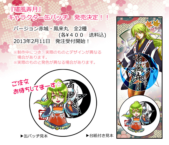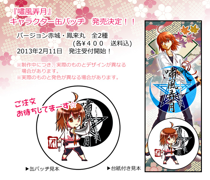 『嘯風弄月』キャラクター缶バッジ販売情報を更新しました!